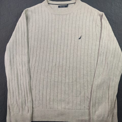 Klassinen tummansininen Nautica-neule. Paidassa on upea kohokuvioitu kompassilogo rinnassa ja pieni Nautica-teksti hihassa. Kauluksessa sisäpuolella keltainen raitayksityiskohta.