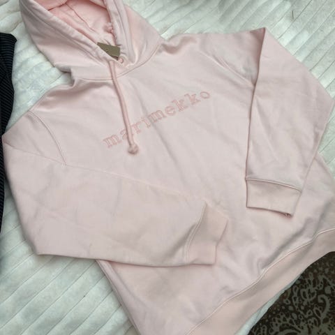 Myyntiin Marimekon luonnonvalkoinen Termi Logo Placement-huppari kokoa S. Malli on reilua unisex-mitoitusta!