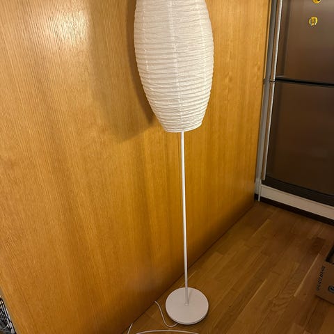 Kuvanmukainen valkoinen jalkalamppu tarpeettomana.