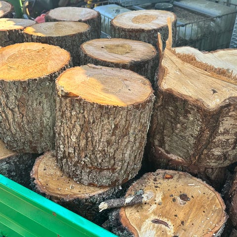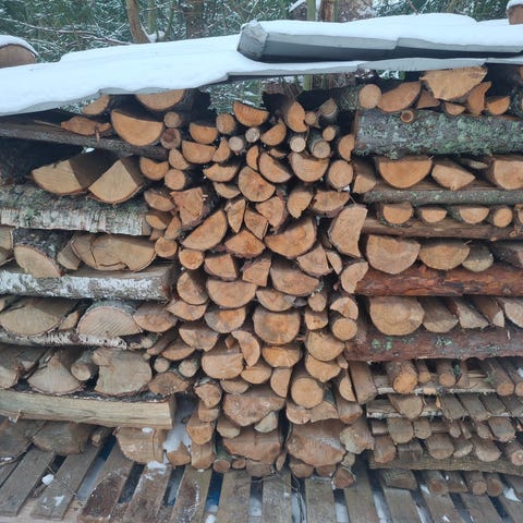 Sekapuuta noin 33 cm pölleinä, jos haluaa itse pilkkoa ja kuivattaa loppuun. Saa valikoida itse puut. 50 euroa per "pinokuutio".