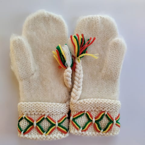 Myydään lapinlapaset, valkoiset. Koko: peukalo- kärki 14cm. pituus 26cm.