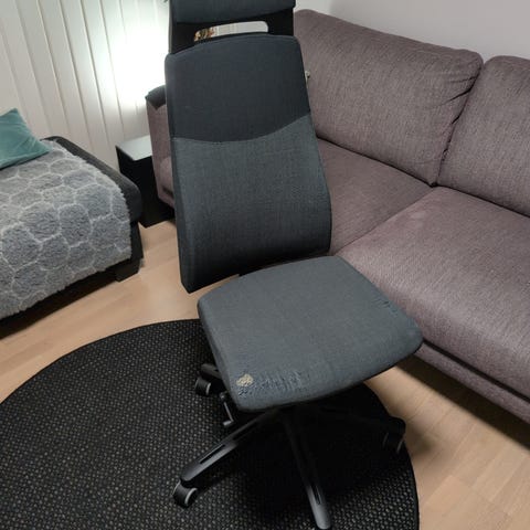 Elämää nähnyt (avokonttorista kissatalouteen) toimistotuoli (purettu osiin, vaatii kasauksen) poisviennin vaivalla.
