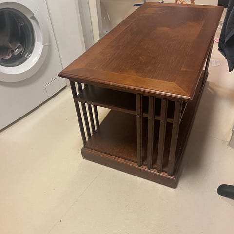 Laadukas Boknäsin olohuoneenpöytä kahdella vetolaatikolla myytävänä. Laatikot tulevat ulos molemmin puolin. Muutamia kuvan jälkiä löytyy. Alataso uudelleen kiinnitetty pienin kulmaraudoin.