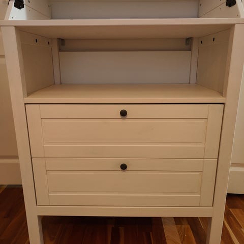 Siisti ja hyväkuntoinen hoitopöytä/lipasto, ikää noin 6 kk. Tyylikäs koivu–valkoinen väri sopii monenlaiseen sisustukseen. Tilava ja tukeva, toimii hyvin myös lipastona. Vähän käytetty, ei moitteita.