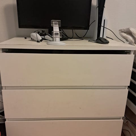 Myydään siisti moitteeton 120cm korkea kaappi / lipasto, jossa avattava kaappi kolmella hylly tasolla, avoin hylly ja neljä kappaletta veto laatikko. Puun näköistä lastulevymateriaalia. Syvyys 36cm, leveys 80cm.