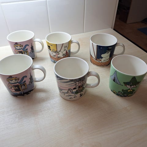Arabia Muumi mukit, 3 kappaletta. Ehjät, hyvä käytetty kunto. Ei näkyvää värjäymää. Myyn pois koska näitä on kertynyt liikaa.