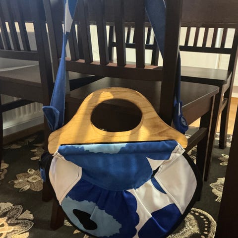 Marimekon kangaskassi puukahvoilla
