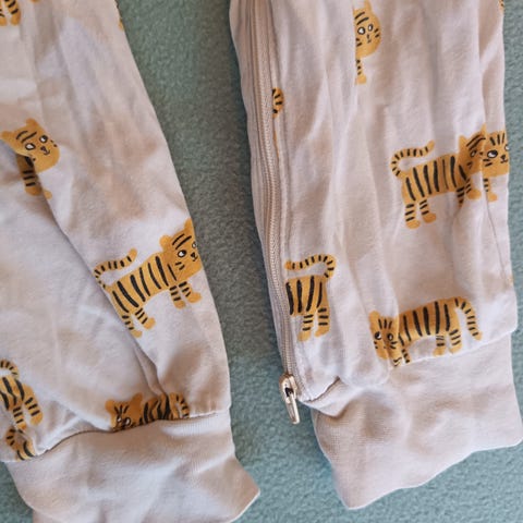 Lindex eläinpeppu yöpuku koossa 98. Ollut samaan aikaan käytössä usean muun yöpuvun kanssa, joten ei kovin usein ole käytetty. Arasta väristä johtuen jotain pientä voi olla, mutta en löytänyt mitään silmiin pistävää.