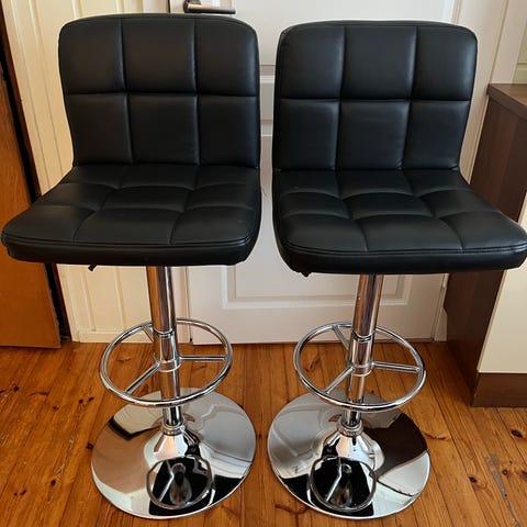 Hyväkuntoiset korkeat tuolit, istuinkorkeus 65cm.