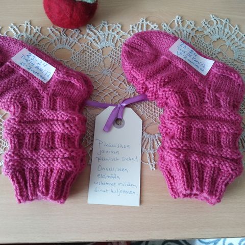 Hinta 12 € sukat ja lapaset 9 € pari