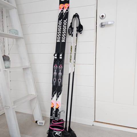 Madshus voiteluvapaat sukset 140cm, sauvat ja monot koko 35