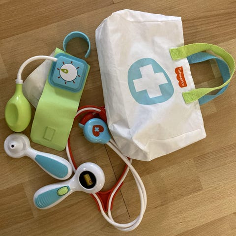 Myydään meille uutena ostetut lääkärin välineet, sis. 12 kpl tarvikkeita mm. stetoskoopin, kuumemittarin ja ruiskun. Setti on muutoin hyväkuntoinen, mutta laukusta on irronnut muovinen kansi ja silmälasien toinen sanka on hieman vääntynyt. Tästä välineet pehmojen hoitoon tai lääkärinpelkoa lievittämään!