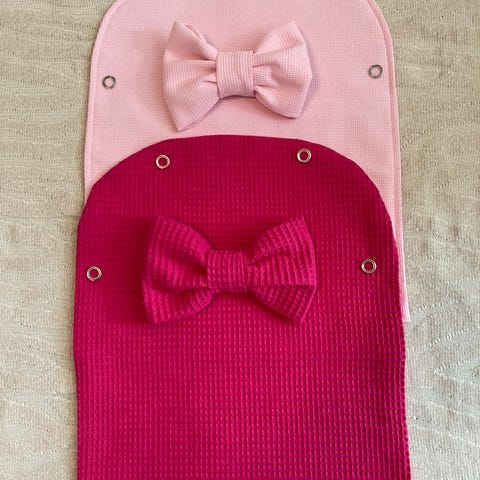 Vohvelikankaista ommeltu vauvan vaunuverhoja. Paljon värejä saatavilla.