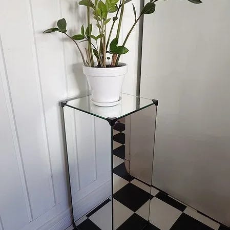 hakusanoja: kukkapylväs, lasikuutio, peilipylväs, kukkateline, kukkapöytä, peilikuutio, peilipilari, koristepylväs, lasinen, peilikuutio, vintage