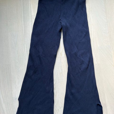 Siistikuntoinen sininen ribbineuleasu. Housut ja paita.