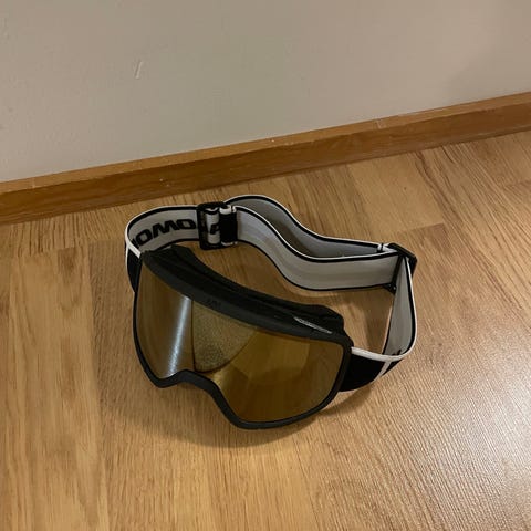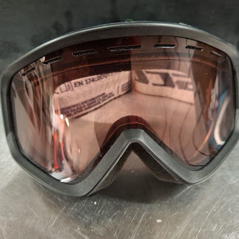 Bolle laskettelulasit, joissa on siniset linssit ja säädettävä musta hihna.