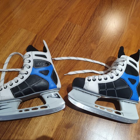 Pieneksi jääneet hokkarit. Hyvässä terässä olevat laadukkaat menopelit. Kokoa 38 vastaa aika hyvin kokoa. Ei vielä hajuhaittoja.