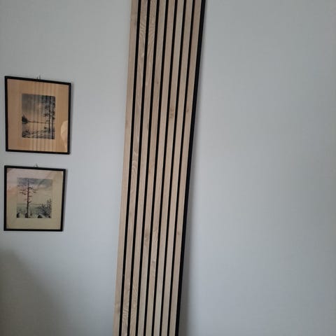 Uusia akustiikkapaneeleja, nämä otettu paketista pois, mutta ei ole asennettu kun mieli muuttui. Yhden paneelin mitta 18 x 560 x 2440 mm, myydään vain yhdessä 4 kpl. Uusien hinta 79e/kpl. Nouto.