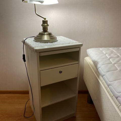 Kaksi vaaleapuista yöpöytää vetolaatikolla