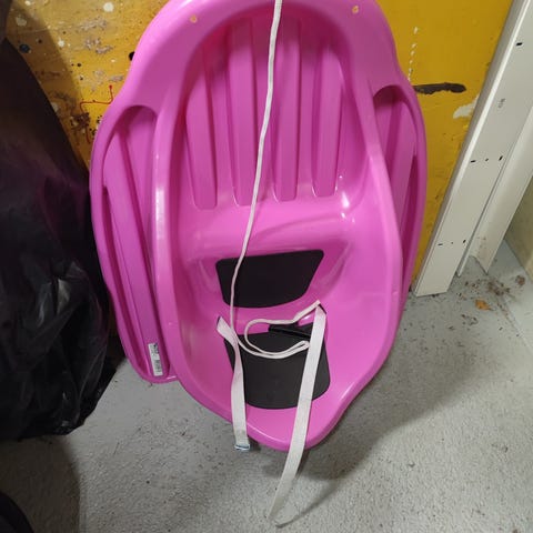 Musta Dtiga babycruiser vauvapulkka seuraavalle pulkkailijalle. Vetonaru ehjä, vyöt paikallaan ja pohjassa maltillista kulumaa.