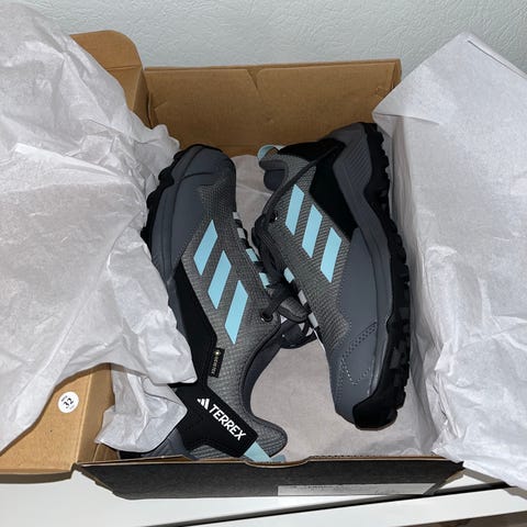 Adidas vaelluskengät koko 38, harmaa väri. Soveltuvat vaellukseen ja ulkoiluun. Kenkien materiaali ja rakenne tukevat kestävyyttä ja mukavuutta ulkoilukäytössä.