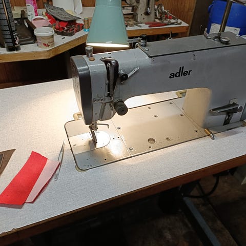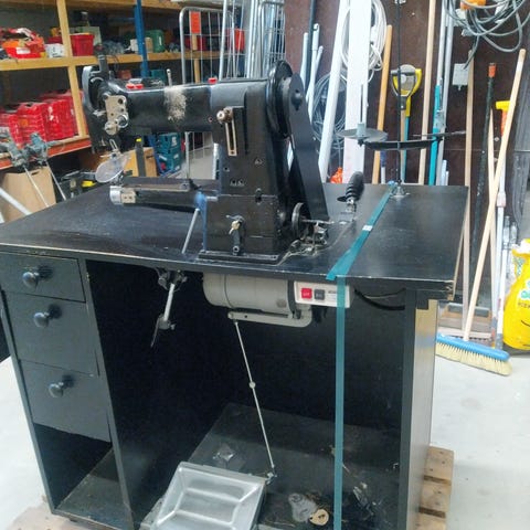 Adler ompelukone jalustalla, harmaa väri. Mekaaninen ompelukone, jossa jalusta ja sähköinen käyttömekanismi. Sopii erilaisiin ompelutöihin, kuten vaatteiden ja muiden paksujen, mm nahan ompeluun.
