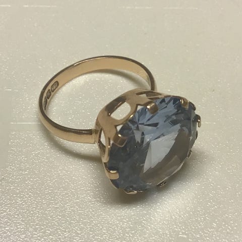 Myydään upea vintage design 14K kultasormus vaaleansinisellä kivellä.