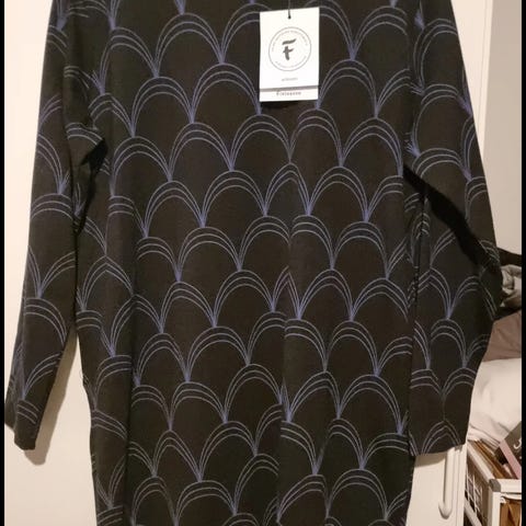 Finlayson naisten tunika/mekko, jossa on mustaveeshi kuosi. Valmistettu puuvillasta ja polyesteristä, sisältää myös elastaania. On suunniteltu naisille ja siinä on lyhyet hihat, jotka ovat pääntiestä mustat. Materiaalikoostumus tarjoaa mukavuutta ja joustavuutta.