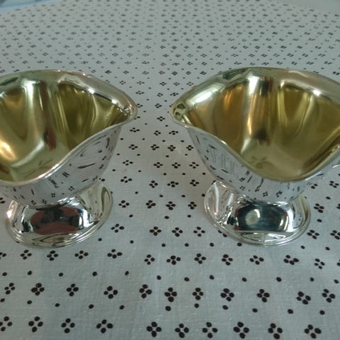 Tässä hienosti patinoituneet ilmeisesti Auran kultaseppien 60-luvulla valmistamat alpakkaiset sokerikko ja kermakko.