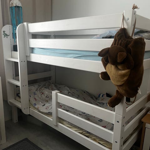 Myydään muutama vuosi sitten ostettu Ikean Mydal kerrossängyn runko (90x200). Tarkemmat speksit https://www.ikea.com/fi/fi/p/mydal-kerrossaenky-maenty-00102452/. Uutena ostettu. Siistissä kunnossa, ei ole liimailtu tarroja, eikä muutoinkaan sotkettu. Yksi ruuvi puuttunut alkujaankin, ei ole haitannut/ vaarantanut käyttöä eikä kokoamista. Vain nouto. Mmyynnissä myös muualla
