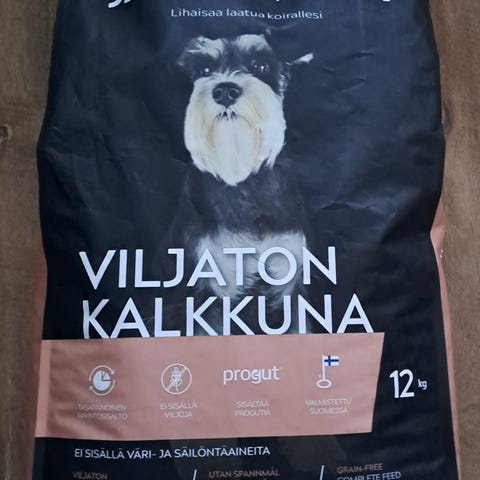 Avaamaton 12 kg säkki, voimassa 02.06.2026. Hyvä ruoka, koira tykkää. Ei viljaa, väriaineita eikä säilöntäaineita. Vain nouto Lahesta.