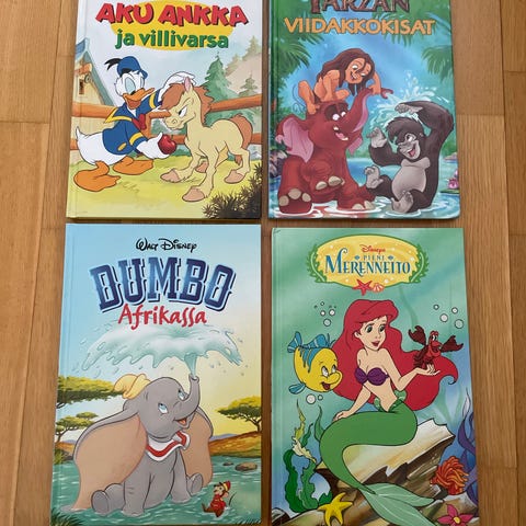 Neljä Disneykirjaa. Ylimpiä hieman teippailtu, mutta luettavassa kunnossa.