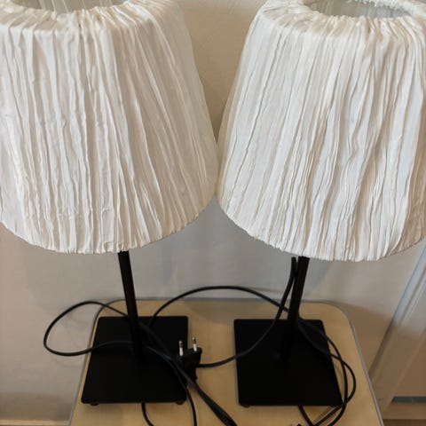Kaksi pöytävalaisinta. Pistokkeella, lamput mukana.