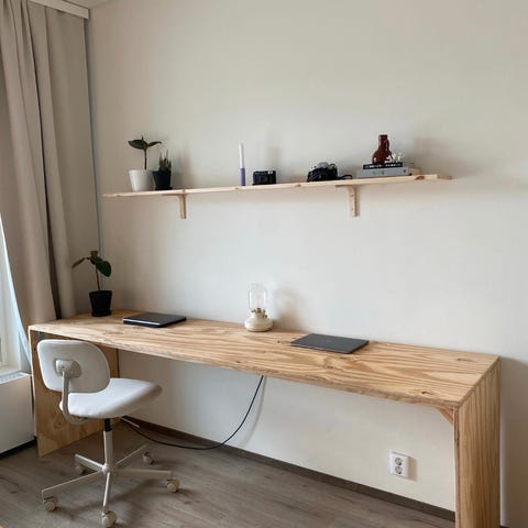 Upea viime syksynä hiottu, petsattu/maalattu työpöytä. Täyspuinen.