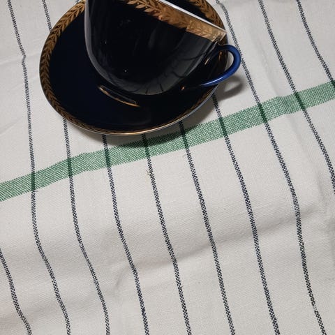 Myydään 11 paria upeita koboltinsinisiä ja kultareunaisia Lomonosovin posliinitehtaan valmistamia kahvikuppeja, asetteja ja pullalautasia. Kuppien korkeus on 5 cm ja halkaisija on 8 cm, asettien halkaisija on 13 cm ja pullalautasien halkaisija on 18 cm. Kaikki ovat kaikinpuolin hyväkuntoisia, siistejä ja ehjiä. Kaupanpäälle yksi asetti ja pullalautanen. Kupeissa ja lautasissa käytetty kuvio luotiin jo vuonna 1944 ja tuotanto alkoi 1950-luvulla. Made in USSR. Posliinituotteita. Vain nouto tai tuonti Turun seudulle. Käteismaksu noudettaessa.