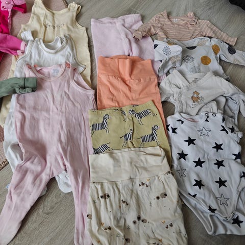 Hyväkuntoinen tyttövauvan vaatepaketti.