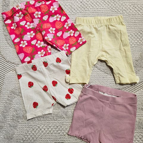 Kesävaatteita pienelle pojalle: t-paita ja shortsihaalari pari kertaa käytetty. Neppareista lähtenyt pesussa väri, ks. toinen kuva. Hellehatusta leikattu laput irti, mutta aika pieneen päähän sopiva 🙂 lippiksessä pientä pesuhaitua pinnassa.