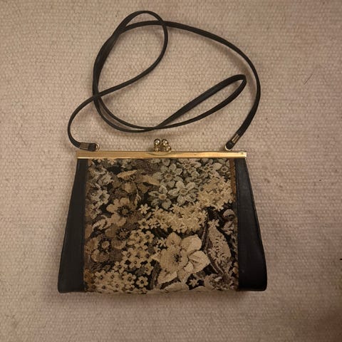myydään antiikkia kangas/nahkainen pieni käsilaukku.