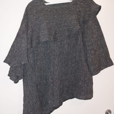 Myynnissä musta kotimaisen Tarina-Asun tunika. Rypytettyä ohutta pellavasekoitetta, pellavaa 96%, pa 4 %.