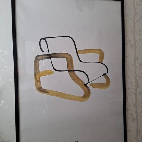 Artek juliste puukehyksissä , 100x70cm. Uusi (muovi päällä) vesiväreillä maalattu Artek Aalto 611 tuoli . Ruotsalainen taiteilija .