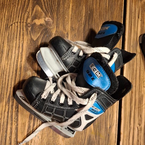 Hyväkuntoiset, pienet hokkarit seuraavalle luistelijalle. Myös suojat saatavilla nopeimmille.