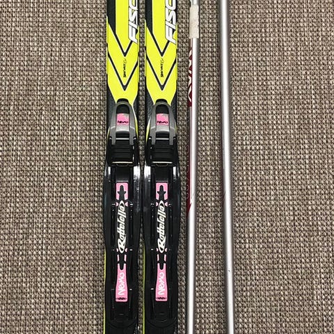 Lasten sukset Fischer 117cm, sauvat Yoko 90cm. SNS siteet. Nouto Itä-Hakkilasta.