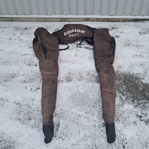 Kilpakärryyn suojapussit, aisaosat ja penkkiosa. Vanhat mutta toimivat. Solkikiinnitys.