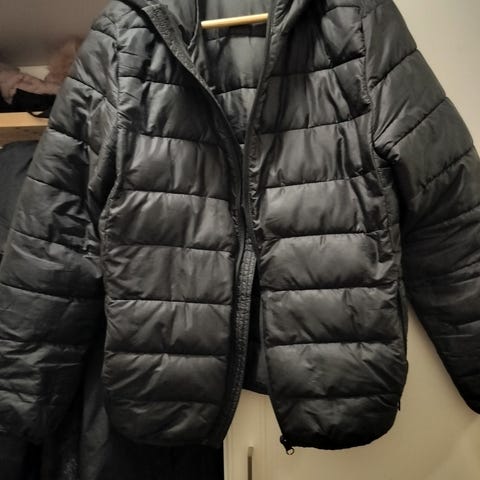 Miesten musta H&M:n kevyttoppatakki koossa M. Vastaa suht hyvin kokoaan. Käytetty jonkin verran, mutta kunto edelleen hyvä. Vetoketjulliset taskut ja yksi vetoketjutasku sisäpuolella. Kiristys kumpparit hupussa ja helmassa.