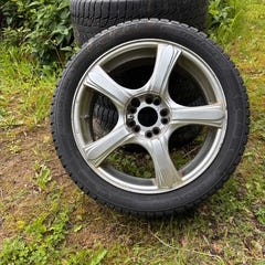 Lähes uudet Volvon kitkarenkaat vanteineen myynnissä. Renkaat on uudet.
