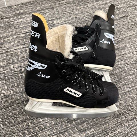 Bauer Jääkiekko luistimet lasten koko 34. Luistimissa musta ja punainen väritys, suunniteltu jääkiekkoon. Materiaalina kestävä rakenne ja terät sopivat lasten käyttöön. Teksti AI.
