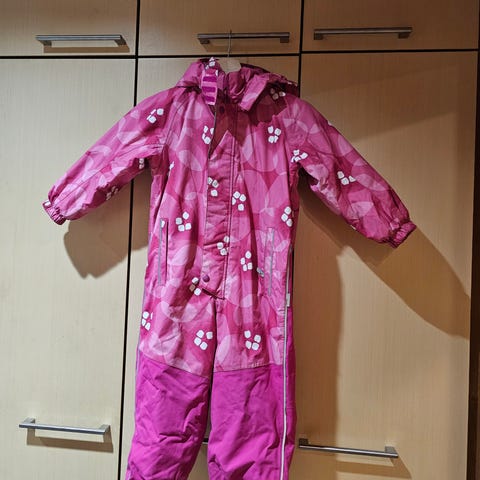 Kahdella lapsella käytetty. Vedenpitävyys tallessa. Ei jalkarenksuja. Kunto aivan siisti ulkoiluun. Ei reikiä. Lämpöominaisuudet tallessa. Kuvissa kuluma näyttää suuremmalta kuin onkaan.