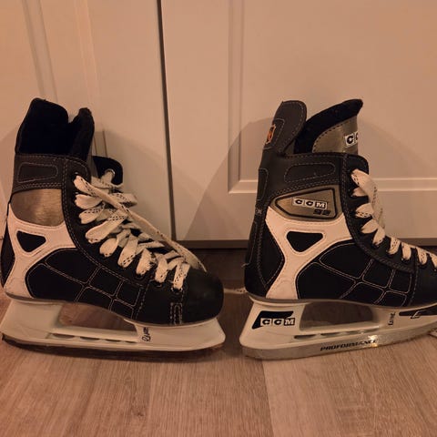 CCM 33 hokkarit, luistimet koko 36. Teroitettu viime vuonna ja hyvässä kunnossa. Kengän kärjen alueella kangas on hieman rispaantunut, ks. viimeinen kuva. Siistit.