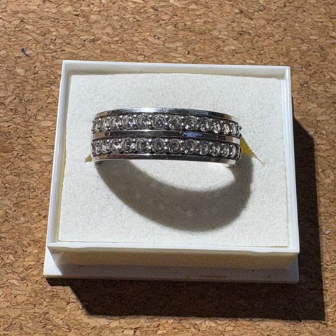 Käytetty, siisti. Normaalia käytön jälkeä, kivet paikallaan.