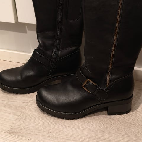 Naisten korkeavarttiset saappaat ruskeat talvikäyttöön 38 koko=6 e sekä mustat syyssaappaat 37 =3 e